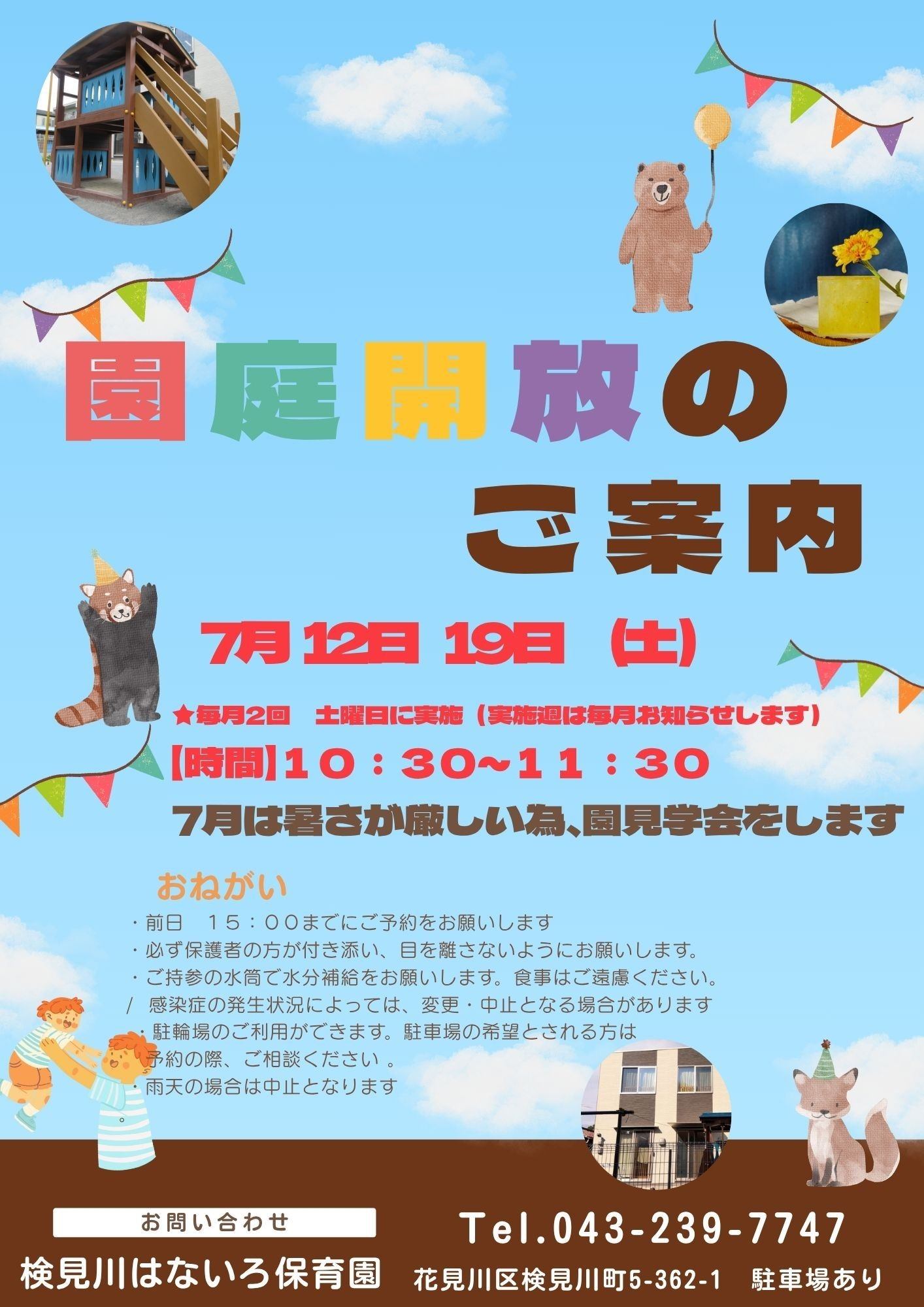 園庭開放(園見学会)のご案内 7/12(土)・7/19(土)