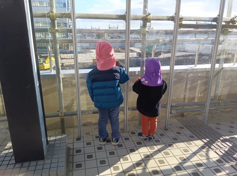 「重機かっこいいね」 「うん」