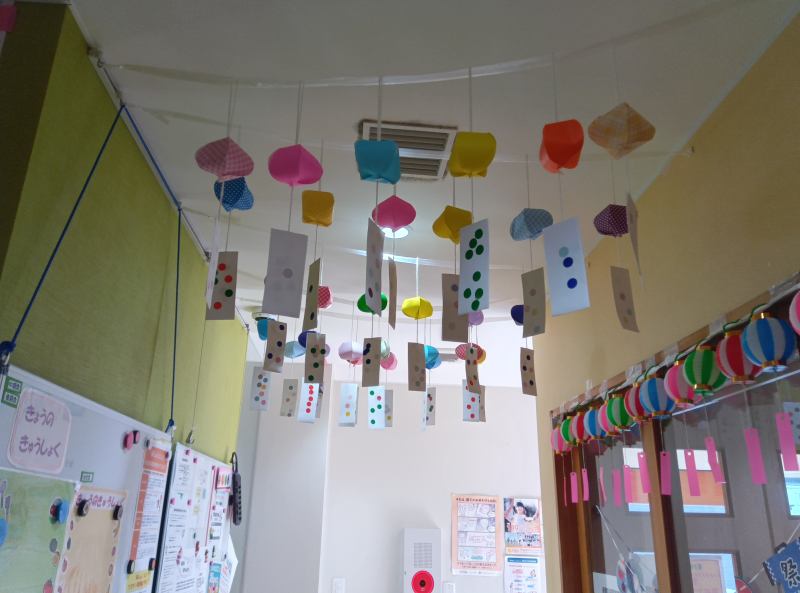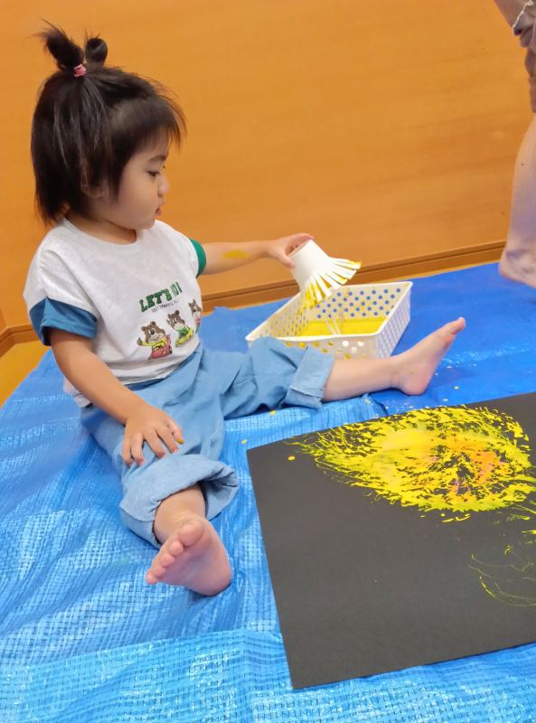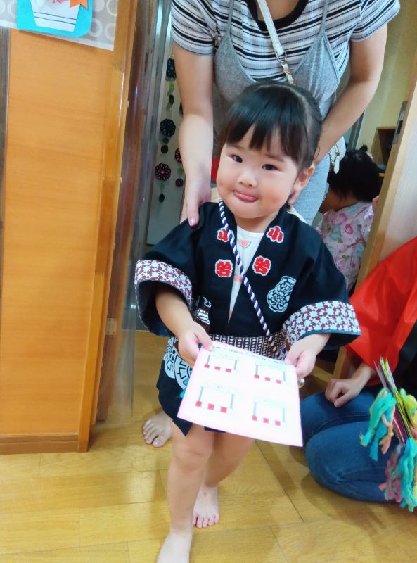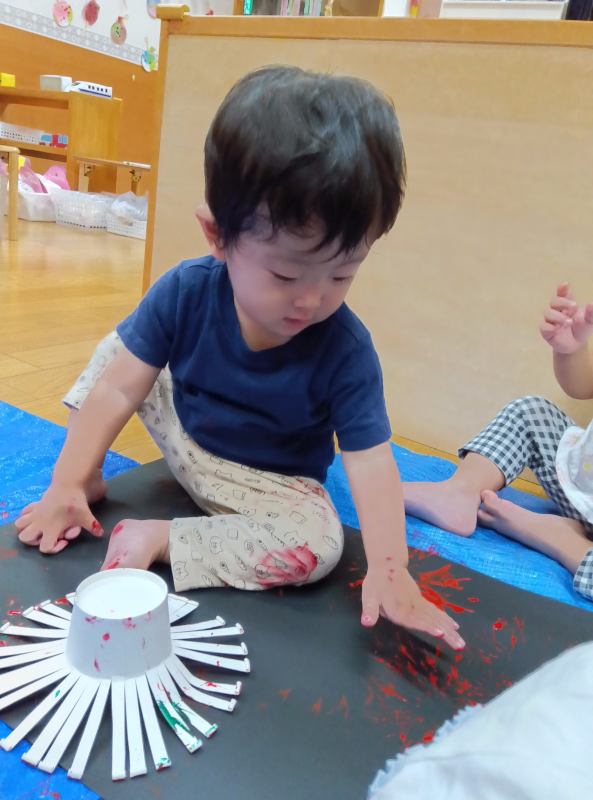 あつぎ はないろ保育園 2025/09/12 8月の子どもたち 見る物ぜんぶに興味津々です♪ 「ぱあっかーーーん!」 食育 すいかより。 「すいか、、、、おいしそうーっ☆」 やさしく、とんとん、、、、、。おやすみ~。 のりは、すきなの。 ペタペタ。 カサカサしてるー!これは、パン粉です。 スタンプより 手のほうが早いぞ‼ 黄色い絵の具の花火、、、きれい。 暑い夏もみんなの風鈴のおかげで涼しそう♪ 夏祭り会場 たくさんの参加ありがとうございました。 何色のヨーヨーにしようかなーー。 「青は?」 「白いのをがんばるぞ‼」 お祭り少女です♪「えへへ」 何本当たるかなーー。 夏祭り ボーリングより 子どもたちの製作 花火スタンプ(素敵ですね。)
