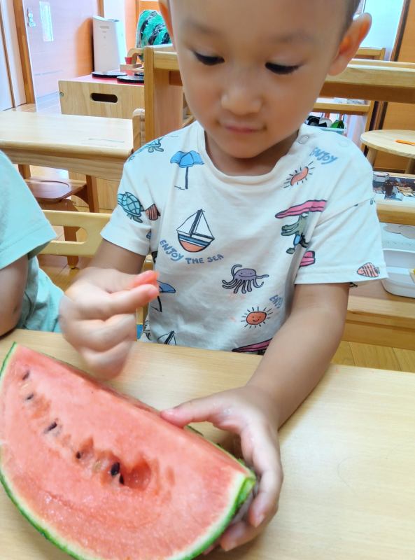 これは、すいかのたね。かたいんだ。