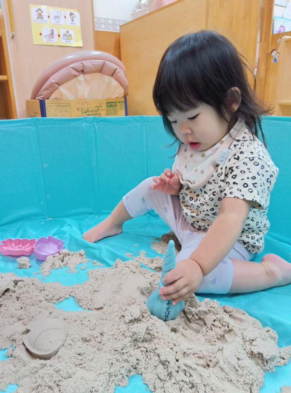 砂遊びたのしいなー。つぎは何つくろうかな♪
