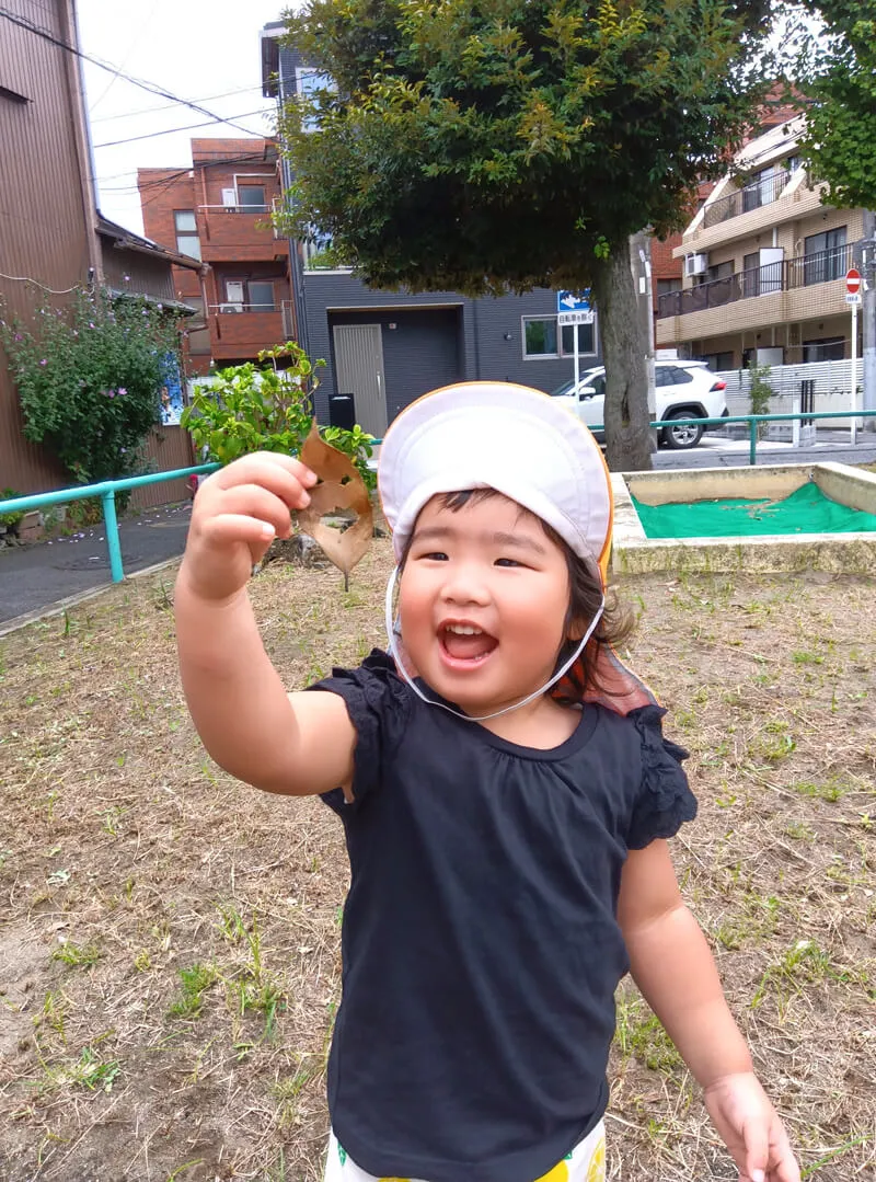 1歳児クラス 葉っぱ~顔みたい!