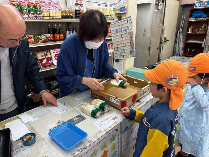 5歳児クラス 買い物 食育で使うきのこの買い出し。