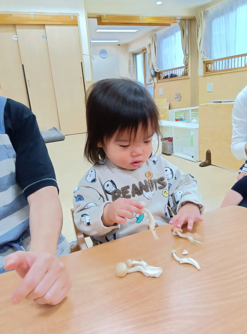 1歳児クラス 食育 キノコ割き