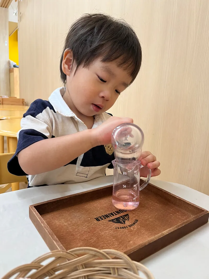 2歳児クラス 自己選択活動(色水の開け移し)