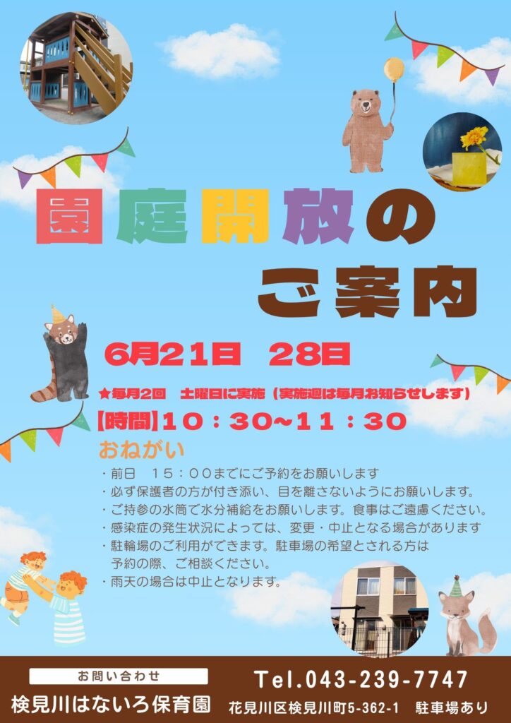 園庭開放のご案内 6/21(土)・6/28(土)