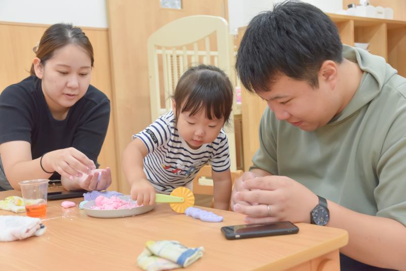 検見川はないろ保育園 2024/11/8 10月の子どもたち 保育参加「親子で遊ぼう会」がありました! 【0歳児】マット遊びやボールプールで遊びました。 【1歳児】米粉粘土を親子で楽しみました。 【2歳児】電車ごっこ 運転手になりきりました! 【3・4歳児】色変えゲームや新聞紙ゲームを親子で楽しみました。 【5歳児】「猛獣狩にいこうよ」を親子で楽しみました。 お芋掘りをしました。