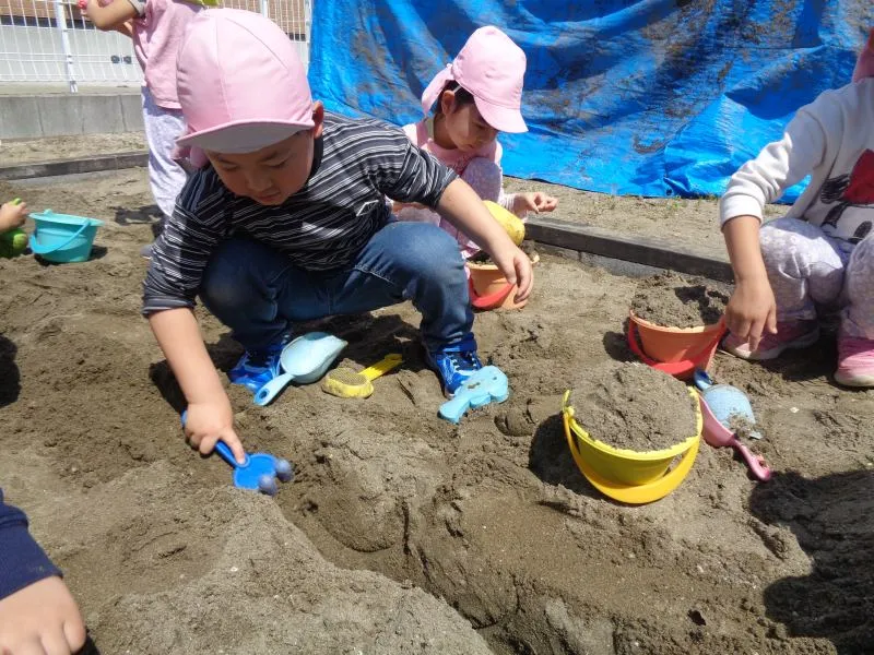 めぶき保育園なりた 2024/05/16 4月の子どもたち 春の園庭 たんぽぽ、いっぱい 元気によーいドン! 砂場では大きなお山作り こちら、建設中 みんなで一緒にジャンケン列車 シールをペタペタ ぼくもペタペタ いいお顔! カエル星人?