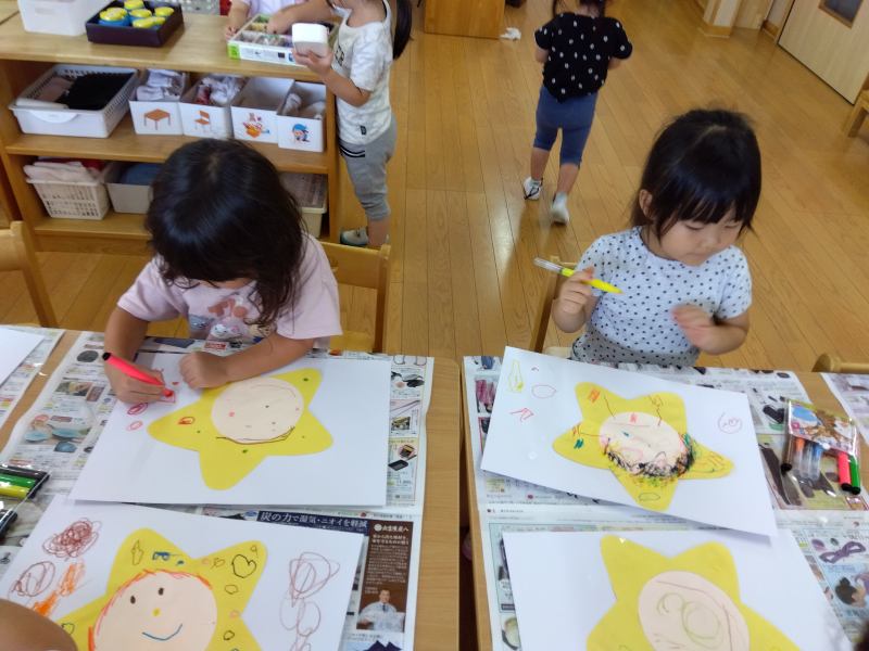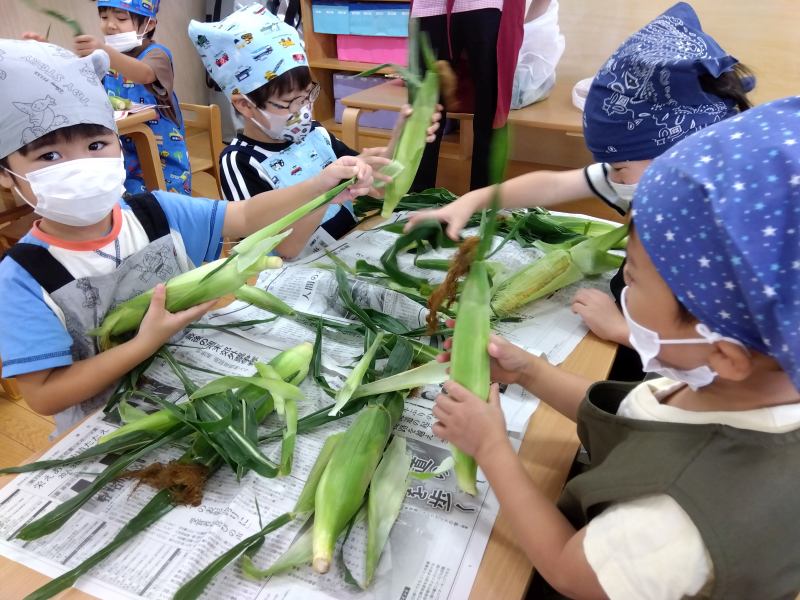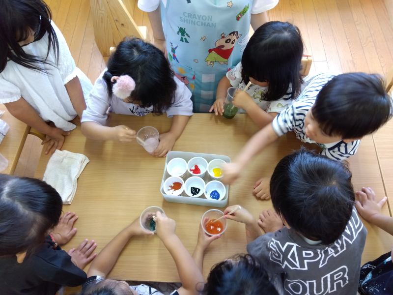 桜ヶ丘はないろ保育園 2025/08/8 7月の子どもたち きょうもいっしょ! ごはんいっぱいできたよ~ じゃがいも洗い…コロコロしてみたよ お顔描けた!まだまだ描くよ~ バイオリンの音、はじめて聴いたよ。 色水あそびをして、いろんな色を混ぜてみたよ。 とうもろこしの皮って、かたいんだね。 うまくつかめない~! 小麦粉粘土で何つくろうかな~