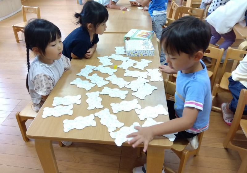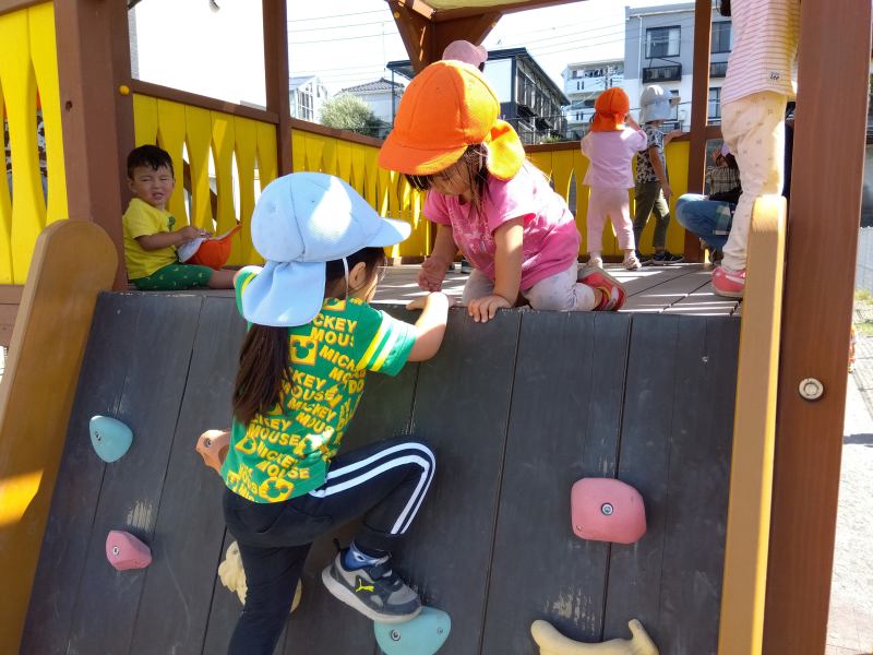 桜ヶ丘はないろ保育園 2025/10/9 9月の子どもたち ばあ~!! みんなでイ~のまねっこ どっちが長い? ボクの大好きな先生… おだんごあげるよ 見てごらん!きれいな石あったよ このお花どうかしら 手伝う?登れる?? キャベツって大きくておも~い! 遊び方覚えたよ