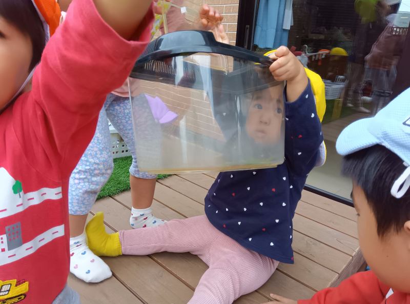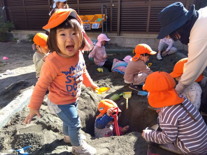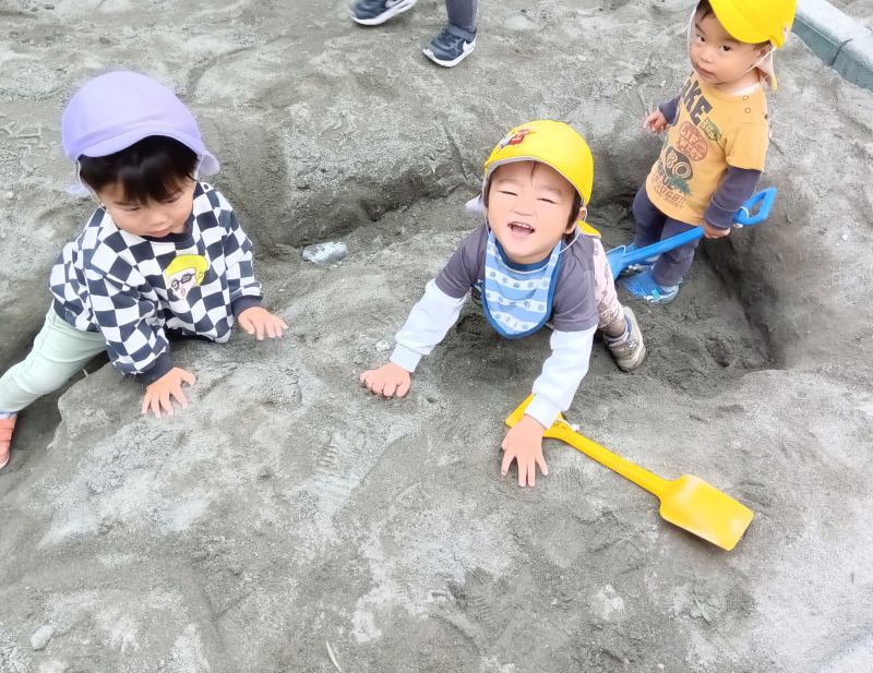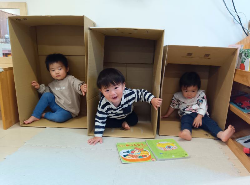 湘南辻堂はないろ保育園 2024/12/13 11月の子どもたち さあ ごはんですよ 段ボールハウスでまったり むしさん どこ~? 穴があったら入りたい おっきい穴! ゴミ収集車で~す♪ お芋ゲットしたぞー! コーヒー美味しい! ちょうちょさん、この指と~まれ! わ~い♪こんな大きいお芋みつけたよ もやい結びできちゃった♪ 救急車の中を見せてもらったよ!