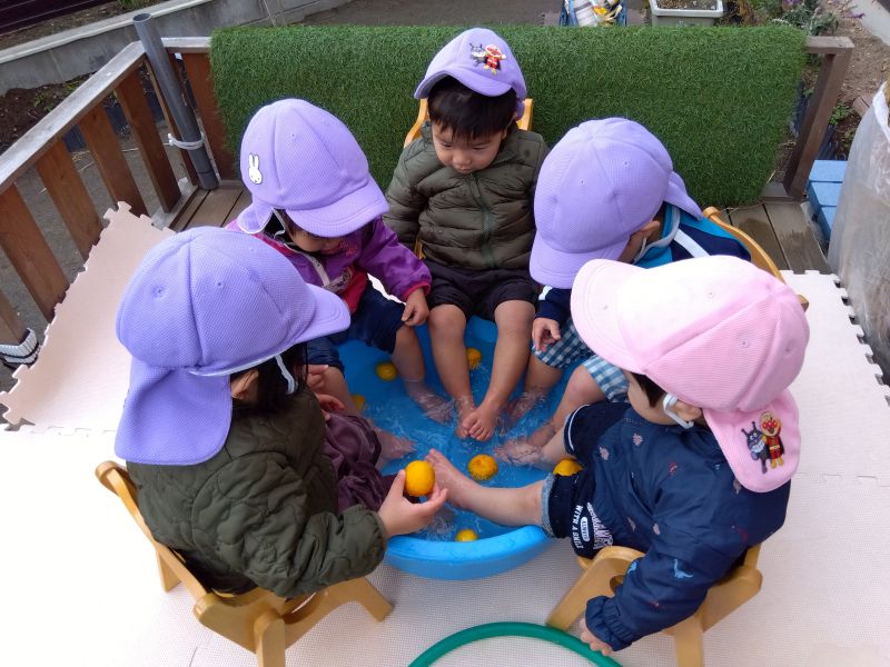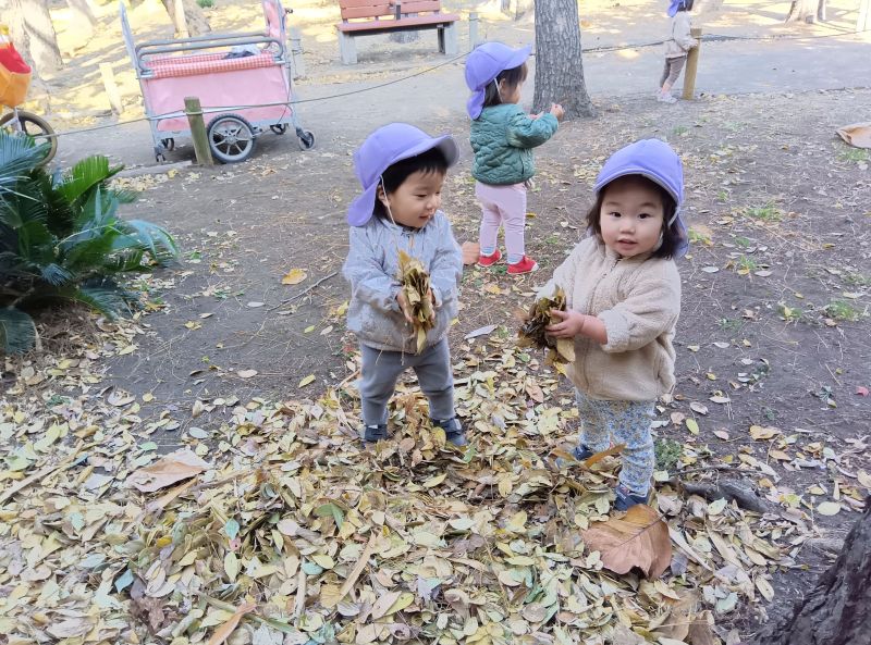湘南辻堂はないろ保育園 2026/01/5 12月の子どもたち 両手いっぱい! 落ち葉を踏んで歩いたね♪ 芝生の広場を駆け回れ~ ゆず湯でぽっかぽか! 年末は掃除で大忙し!! みて~!こんな色の落ち葉みつけたよ☆ 可愛いトナカイさんとサンタさんの登場 お誕生日バッジを付けた子に「おめでとう!」 給食のお手伝い!カリフラワーちぎり 冬至にゆず湯♪いい匂い☆