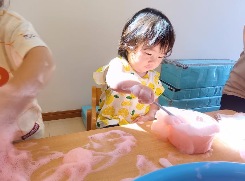 湘南辻堂はないろ保育園 2025/10/6 9月の子どもたち ふわふわの泡に夢中です おいしいくだもの みんなでパク マットのお山みんなでGO! 水たまり、最高!! 素敵なお家で暮らしています 足のつめ、ママとおんなじだよ。 ジュースだったらいいのになぁ くっついてくっついて プール最高! 今日の給食なんだろな♪