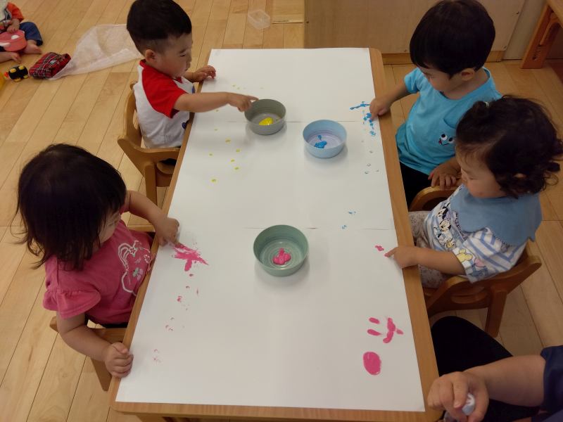 大和はないろ保育園 2025/06/9 5月の子どもたち 先生の真似をして、人差し指でチョン! 赤ちゃんにもお花を見せてあげよう!優しいね。 砂遊び?いえいえ、オクラを植えています。 太鼓橋、1人で渡れるよ プリンセスの衣装で、お城を作ったよ! トンネル開通!! 水がキラキラしているね。気持ちいい~。 大きくな~れ! みんなでアリの観察中 玉よ、入れ!ジャーンプ!!