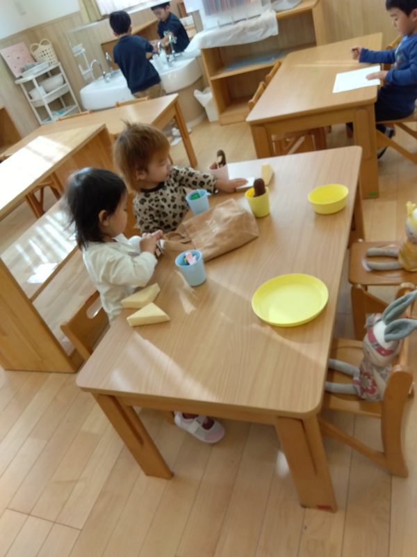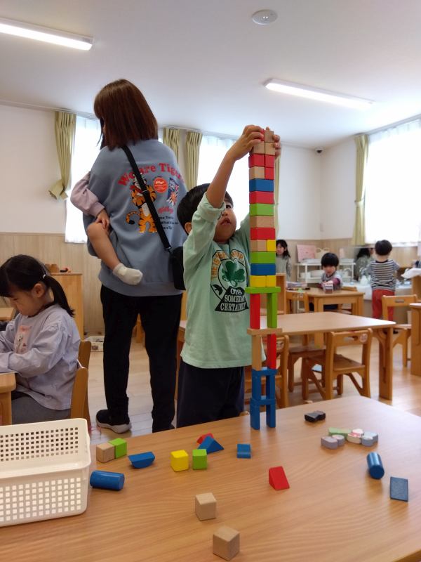 大和はないろ保育園 2024/12/13 11月の子どもたち くまさんタワー、完成! 牛乳パックで作ったハウス、誰かいるかな? 1歳児さんの背中に哀愁を感じます… せんせい、み~つけた! 集中、集中 新しいおもちゃで作った共同作品! うさぎさんとねこさんの4人でランチタイム 保育園でキャンプしよう! 玩具入れのふたをコンロに見立ててお料理中 仕事中?それとも食事中?どちらにしても楽しそう!