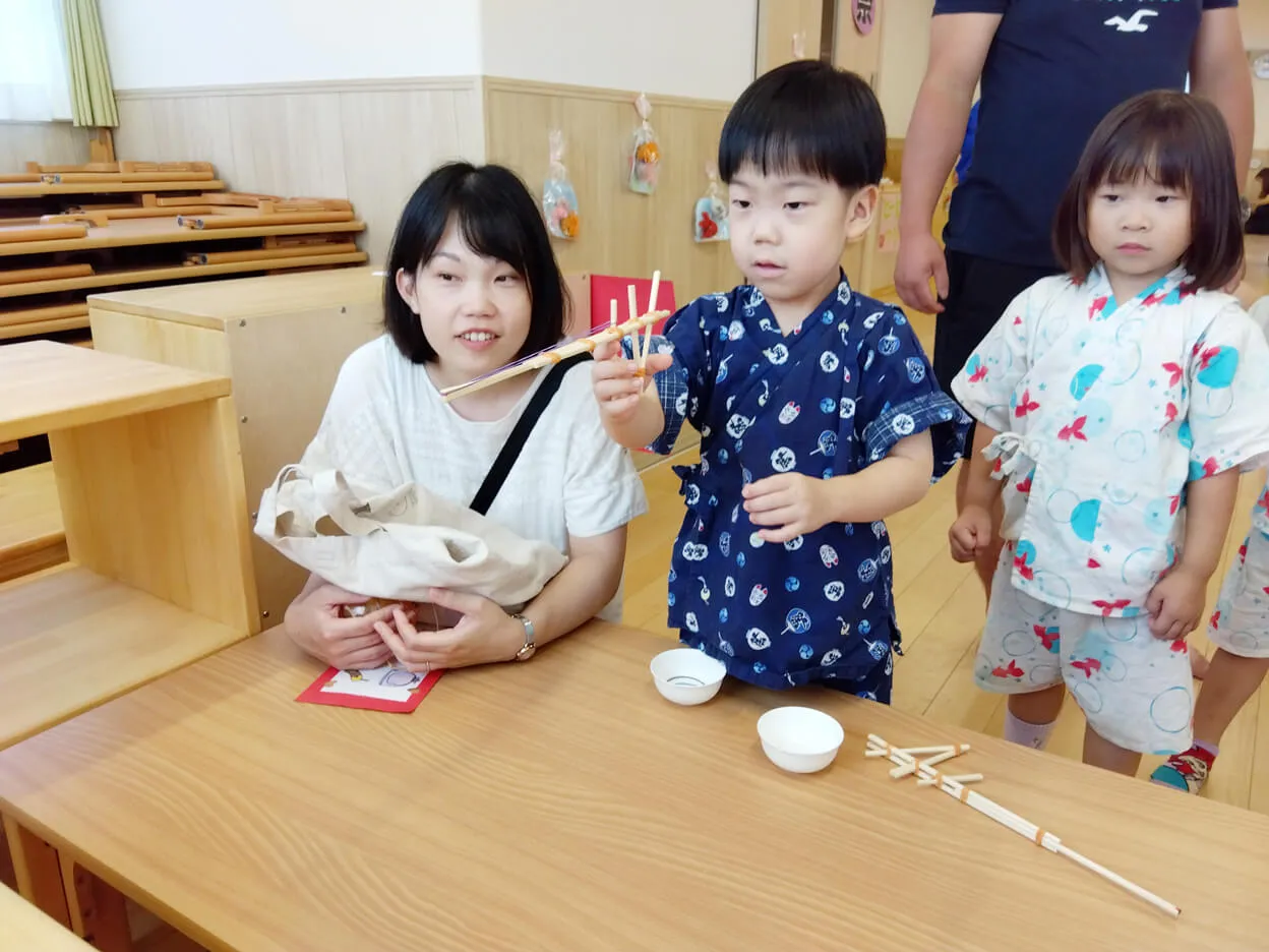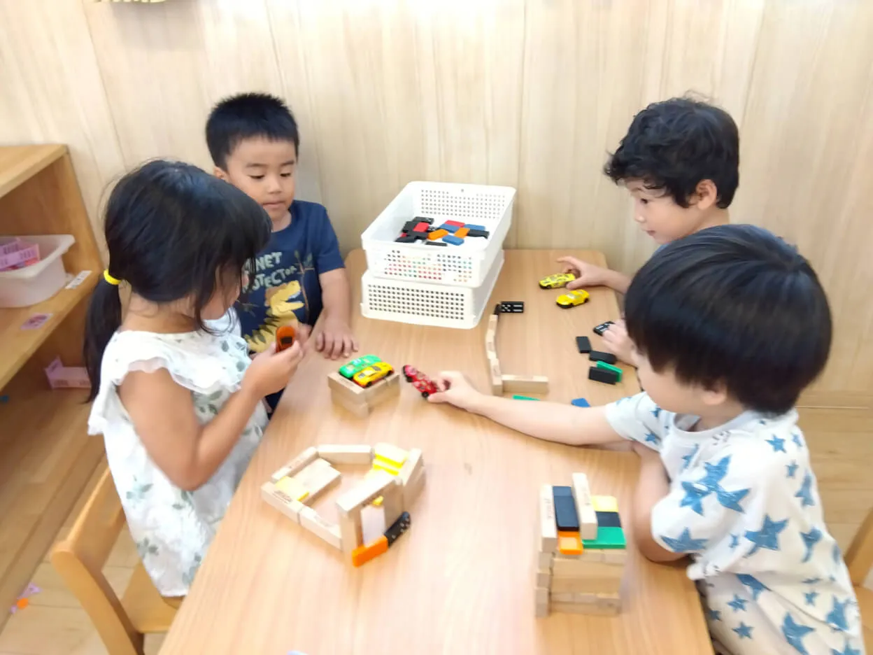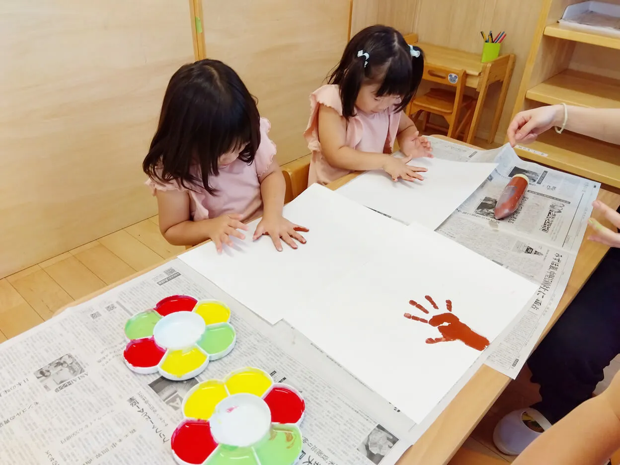 大和はないろ保育園 2024/10/15 9月の子どもたち 【親子参加行事】今年は「はないろまつり」を開催しました。 年長さんがお店屋さん役:「いらっしゃいませ!オレンジジュースですね。はい、どうぞ!」 射的:的を狙って真剣な表情です。当たるかな? 色々な車庫があります。 こちらはタワー型の車庫ですね。 ワニさんに乗ってゆらゆら~♪ 手形:大きくなった手のひらが大きな木に変身! お絵描き:みんなで段ボールにお絵描きしました。 「ここに座ってね。」 何をしているのかな?
