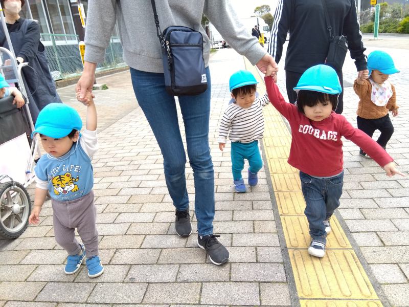 乳児クラス:園の前の遊歩道をお散歩