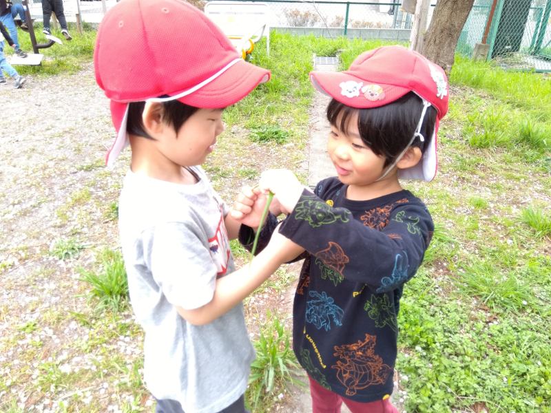 ながい葉っぱを組んで対決ごっこ。どんな葉っぱが強いかな?
